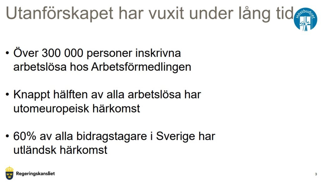 På måndagen presenterade regeringen och Sverigedemokraterna sitt förslag om att införa ett nytt jobbskatteavdrag som innebär att alla som arbetar får behålla mer av sina pengar. Under pressträffen presenterade man fakta om demografin bland de som i dag lever på bidrag.