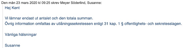 – Nej, vi går ut med antalet bara och det totala beloppet, svarar Susanne Meyer när vi ringer.