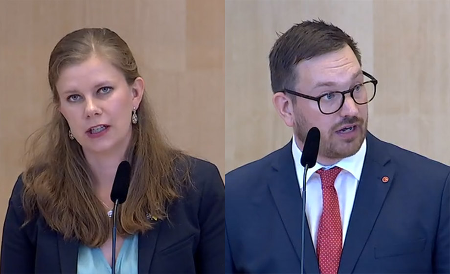 Under debatten i kammaren leds kampen mot DCA av miljöpartisten Emma Berginger och vänsterpartisten Håkan Svenneling.