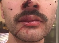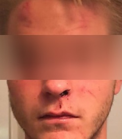 Kort därefter landade en person in i hans rygg med en flygande spark. Därefter släpade gänget honom bort från gatan och ut mot ett närliggande skogsområde. I polisförhör uppger brottsoffret hur gänget bestående av tre eller fyra personer tvingade till sig hans värdesaker samtidigt som de slog och sparkade honom över hela kroppen. ”Jag tror att dom slog och sparkade på mig ca 30-40 gånger”. Vidare uppger brottsoffret att gärningsmännen kallade honom ”jävla horunge” och samtidigt hotade honom: ”Vi kommer döda dig om du ringer polisen”.