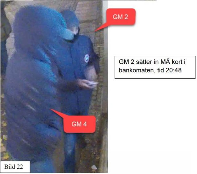 Nedan syns två av gärningsmännen på en övervakningskamera tillhörande den närliggande bankomaten där man tar ut tvåhundra kronor.