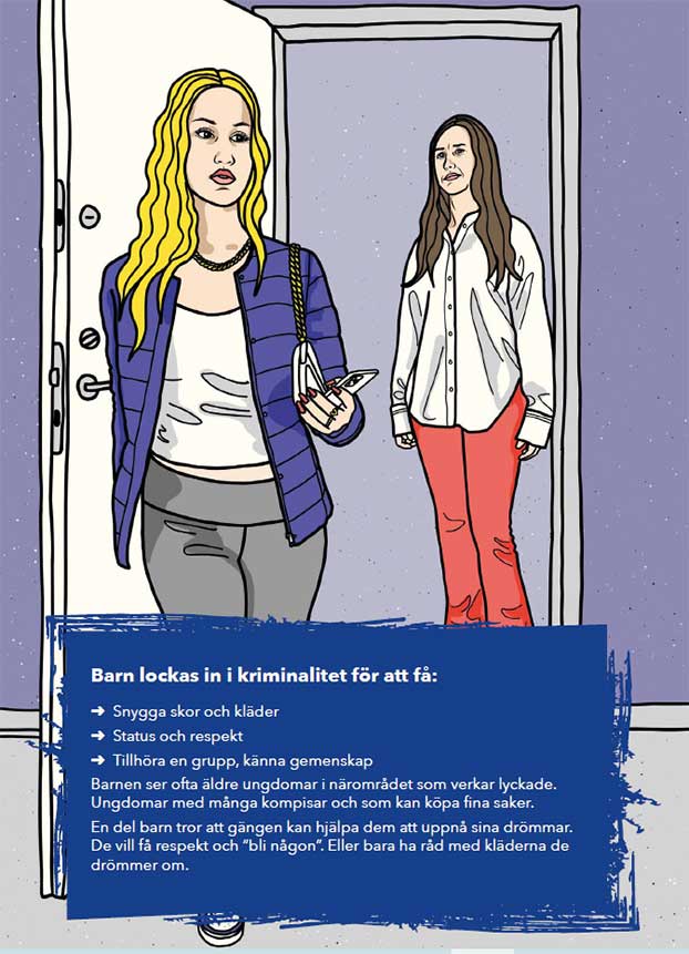 Den invandringsrelaterade gängkriminaliteten är nu en så etablerad del av ungdomsmiljöer att Socialdemokraterna anser det nödvändigt att dela ut en informationsbroschyr till alla barn, ungdomar och föräldrar med tips på hur man undviker att lockas in på brottets bana. Däremot sägs ingenting om hur skötsamma barn och ungdomar ska undvika att bli gängkriminalitetens offer. Inte heller nämns något om gängkriminalitetens intima koppling till migrations- och integrationspolitiken eller vilka som bär ansvar för att samhället idag ser ut som det gör och att broschyrer av det här slaget anses nödvändiga