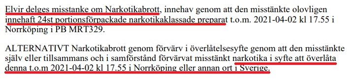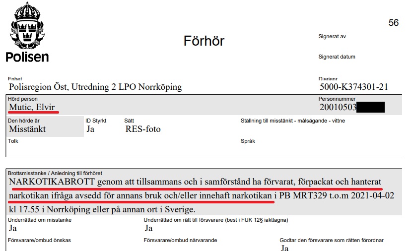 Samnytt kan berätta att Elvir M. är Elvir Mutic från Norrköping. Han förekommer sedan tidigare i belastningsregistret för flera narkotikabrott och rattfylleri. Det framgår av polisens förundersökningsprotokoll att Elvir Mutic kopplas till stadens narkotikahandel.