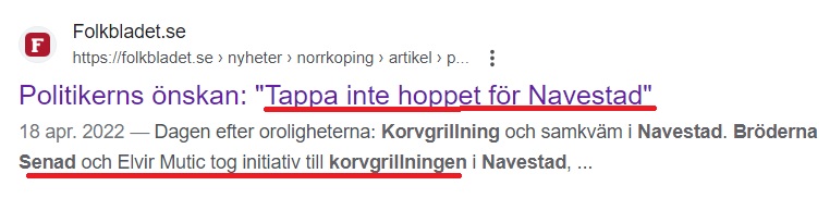 I samband med korvgrillning tidningsartikel i Folkbladet. Politikern poserade med sin bror och framförde att man inte skulle tappa hoppet om problemområdet Navestad efter korankravallerna under påskhelgen. Se bilden HÄR.