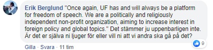 Vidare kritiseras UF för att inte stå upp för yttrandefriheten när de viker sig för påtryckningarna från vänster.