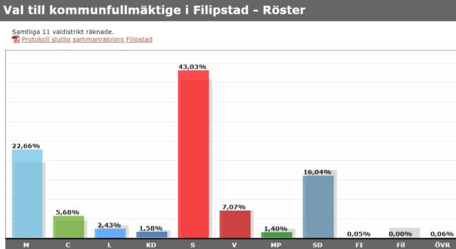 Det socialdemokratiskt starka fästet Filipstad i Värmland som lider av djup ekonomisk kris och vid flera tillfällen har varit omdiskuterat på nationell nivå som ett skräckexempel meddelar nu att man har en lösning på problemen. Lokala S-pampen Åsa Hååkman Felth ska med hjälp av skattebetalarnas pengar bygga en ny simhall, skola och idrottsanläggning samt höja skatten, vilket hon kallar att ”satsa sig ur uppförsbacken”.