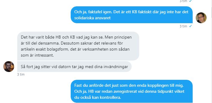 För att belägga min anklagelse mot Frick lägger jag ut skärmdumpar av vår konversation på Twitter där läsarna kan ta del av samtalet och bedöma själva Fricks flexibla inställning till pressetiken och sanningen: