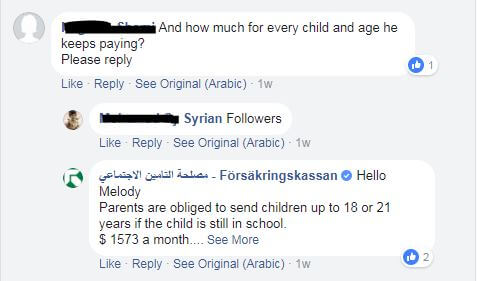 En genomgång av Facebook-profiler tillhörande dem som kommenterar och gillar inlägget visar att en stor del av dem inte ens verkar bo i Sverige. Det är oklart om de har någon svensk anknytning överhuvudtaget. Till exempel ställer en person vars profil anger att den har börjat gå på Gawdat Al-Hashemi High School i Damaskus för en vecka sedan en fråga om det finns någon ersättning för graviditet i Sverige. Frågan besvaras artigt av Försäkringskassans handläggare som berättar om ”graviditetspenning”.