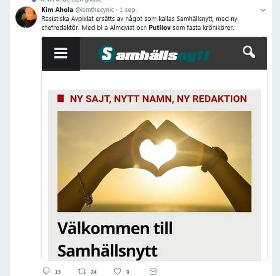 Egor Putilov har en hotbild som journalist mot sig sedan tidigare och lever med skyddade personuppgifter som hans före detta uppdragsgivare, tidningen Aftonbladet, passade på att röja för ett år sedan i samband med en kampanj de drev mot Putilov. Under helgen skapades en hätsk stämning i sociala medier i samband med lanseringen av Samhällsnytt där Putilov alltså är en av journalisterna.