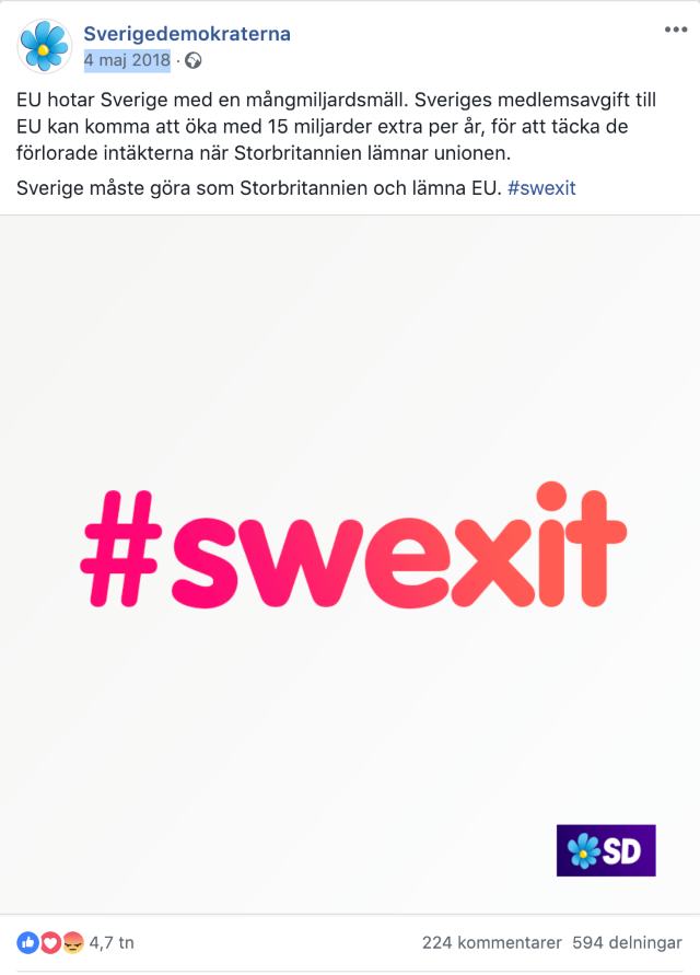 SD har under alla år varit för ett Swexit och hyllade även Brexit som röstade igenom 2016.