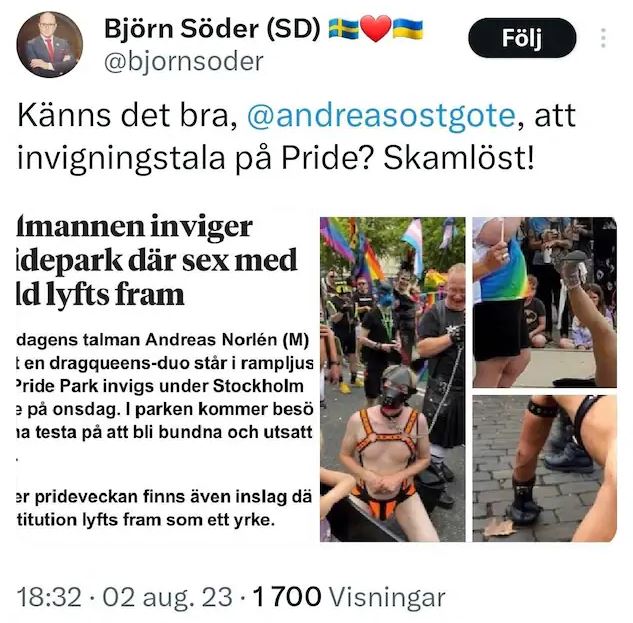 LÄS MER: SD-ledare attackerar Björn Söder efter Pride-kommentar: ”Problematiskt”