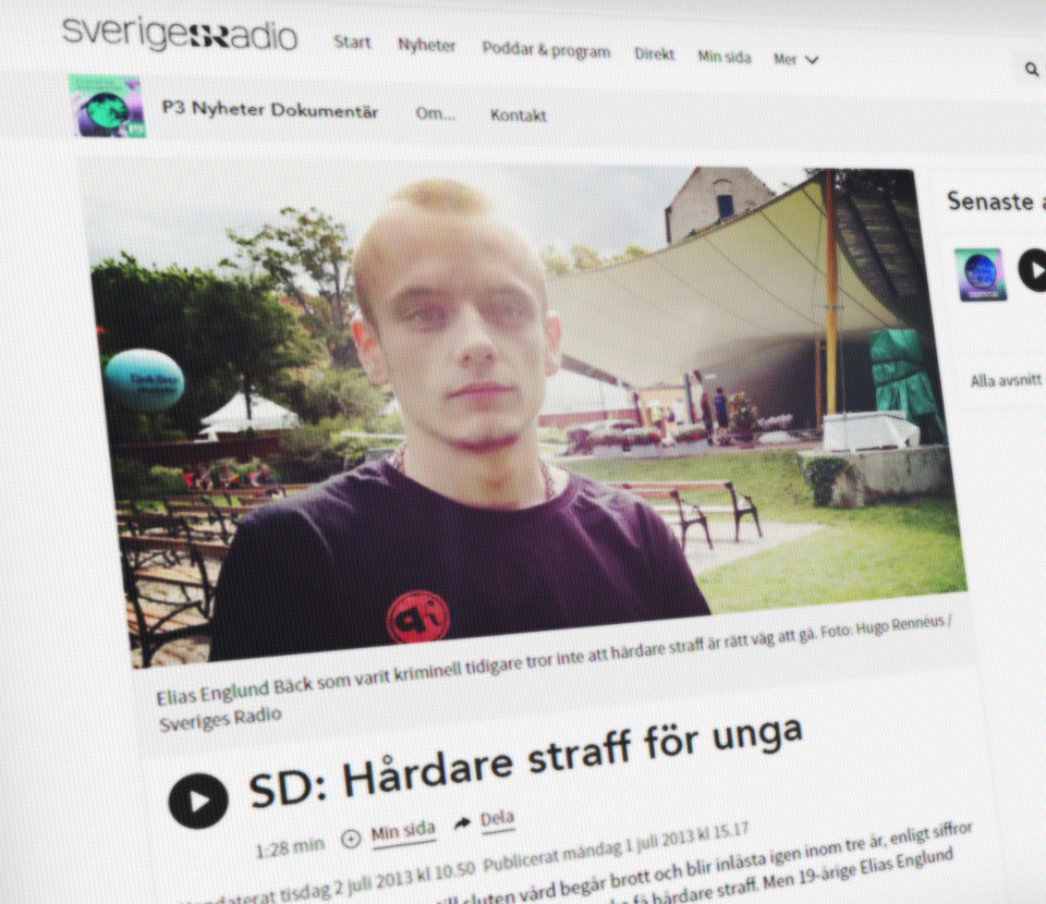 Det var under Sverigedemokraternas dag i Almedalen 2013 som Sveriges radio intervjuade Elias Bäck. Statsradion skrev då om 19-åringen att han ”varit kriminell tidigare”, och lät honom recensera SD:s kriminalpolitiska program.