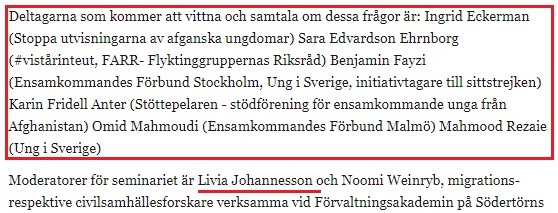 Livia Johannesson är ytterligare en forskare som medverkar i artikeln. Hon engagerar sig bland annat i objektivitet och rättssäkerhet vid Stockholms universitet. Vid sidan om det har hon även engagerat sig som moderator för ett asylaktivistisk vittnesseminarium om civilsamhällets engagemang för uppehållstillstånd till ensamkommande migranter.