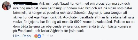 En av kvinnorna berättade att hennes ”pojk Nawid” var med om ”samma sak” och dessutom hängdes ut på sidan kriminellt.com som publicerar domar om kriminella, främst med utländskt ursprung – bl.a. pedofiler och våldtäktsmän. Vilket brott ”pojk Nawid” dömdes för framgick inte av kvinnans berättelse: