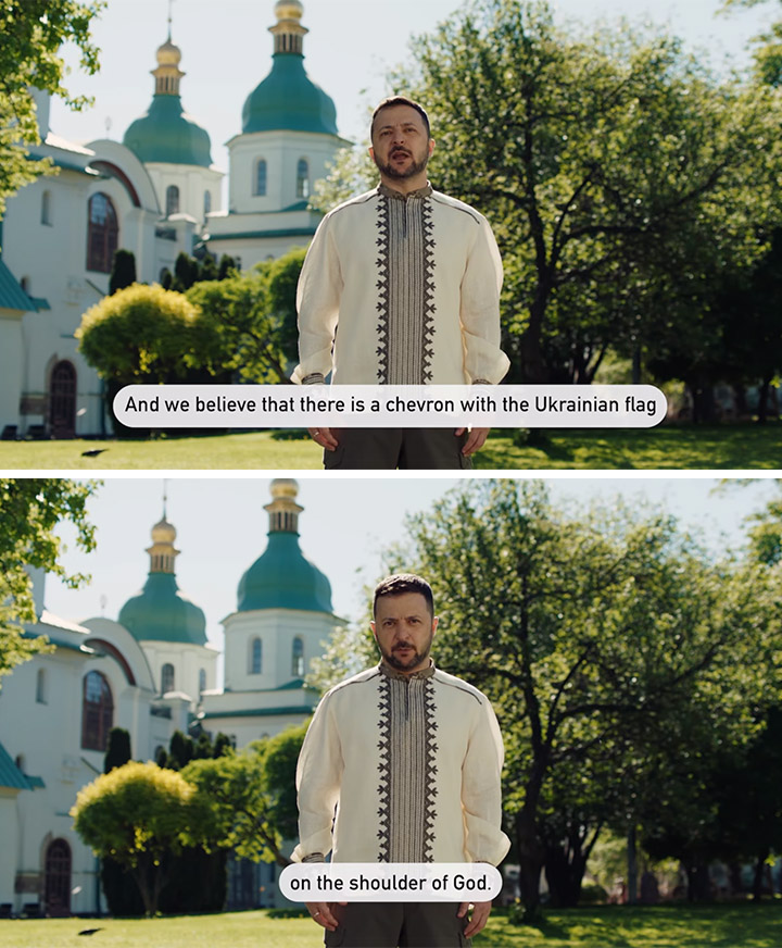 – Vi tror att ett emblem med Ukrainas flagga sitter på Guds axel. Och med en sådan allierad kommer livet definitivt segra över döden! säger han i videon.