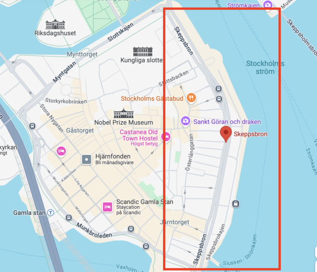 Det var vid kvart över sju på morgonen som en förbipasserande privatperson upptäckte en grönsvart klassisk handgranat på Skeppsbron. Personen slog larm och stora delar av Gamla stan spärrades av under morgontrafiken, vilket medförde stor trafikpåverkan.