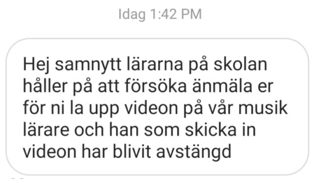 En person påstår att tidningsredaktionen ”skämmer ut skolan” och hotar med att anmäla oss om vi inte tar bort videon. Detta eftersom ”det är vår problem it ditt – fattar du?”.