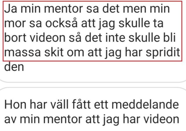 Det är alltså flera elever som berättar att lärare och mentorer har uppmanat eleverna att inte sprida videoklippet och att de ska radera det.