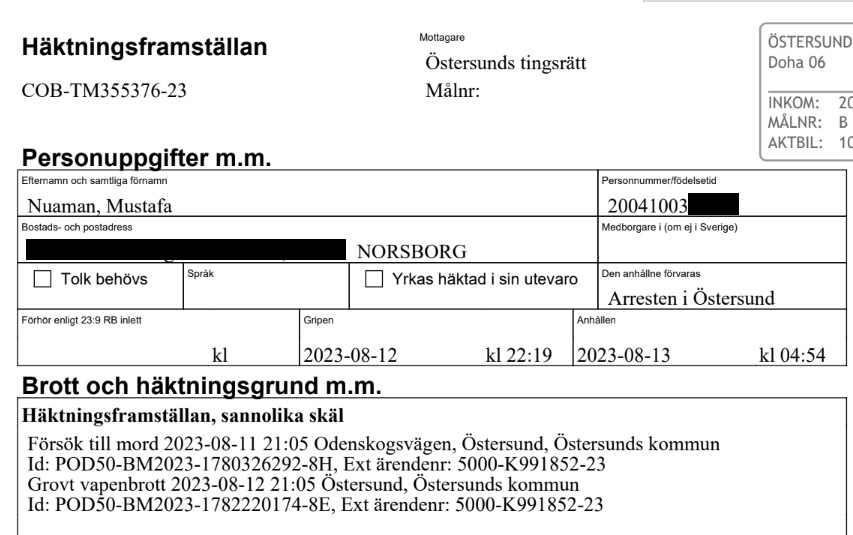 På onsdagen begärde åklagare Emil Tiberg att männen ska häktas på sannolika skäl misstänka för försök till mord och grovt vapenbrott. De häktade är: