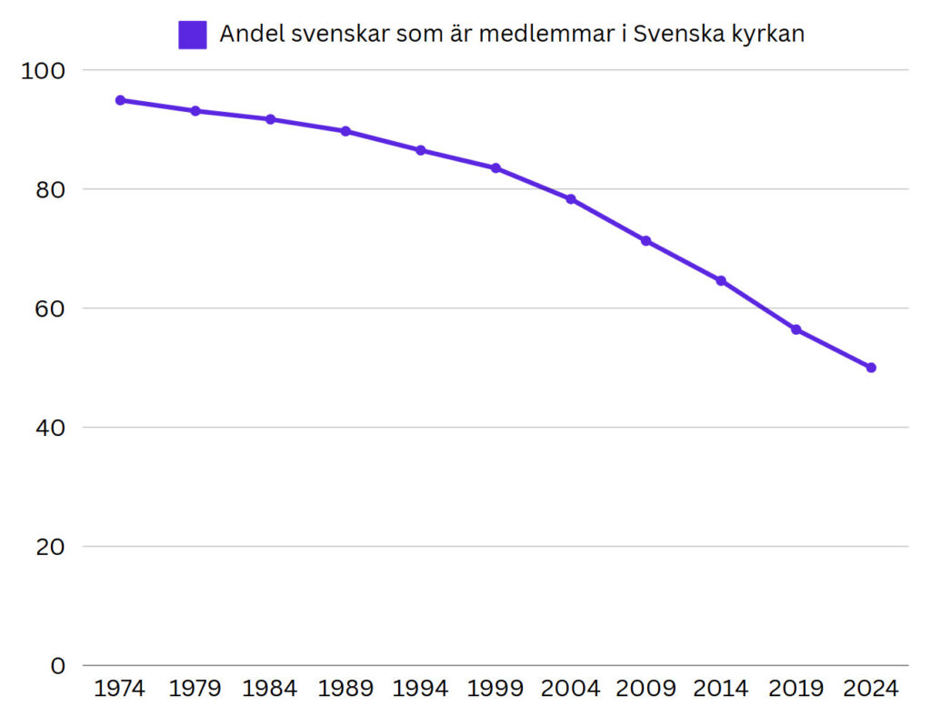 Sett till den statistiken framstår det som att det snart är färre än hälften av dem som bor i Sverige som samtidigt är kyrkomedlemmar.