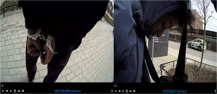 När polis anländer kan de ganska snabbt ingripa mot de båda misstänkta ungdomarna. Det visar sig att den ene av dem har en väska på sig med en pistol i. Båda de unga männen grips.