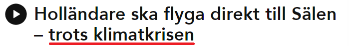 Men statsradion är inte lika positiva till satsningen som kan öka turismen i Sverige. I SR P4 Dalarnas rapportering ligger fokus på den så kallade klimatkrisen.