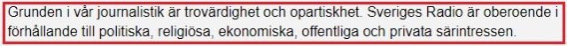 Nederst i artikeln har samtidigt SR en text om att deras journalistik är ”trovärdig”.