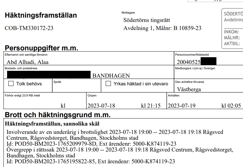 Förra året dömdes Abd Alhadi för misshandel och ett olaga hot där han framförde att en person skulle dödas. Södertörns tingsrätt ansåg att 35 timmar ungdomstjänst var en rimlig påföljd för brotten. Även Svea hovrätt höll med om det.