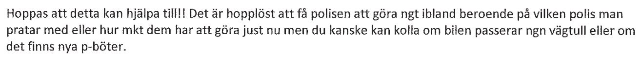 Deras efterforskningar har visat att mannen sannolikt lämnade Sverige – tillsammans med bilen. I ett mejl till Volkswagen Finans rekommenderar de att polisanmäla honom, men konstaterar samtidigt uppgivet: