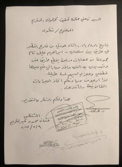 I polisförhör förklarade han att han blev av med bilen i Irak snart efter ankomsten dit i augusti 2016 när Islamiska staten stoppade honom vid en vägspärr och tog bilen. Enligt egen utsago ska han ha rest till Mosul två dagar efter för att få bilen tillbaka – men blev då gripen och satt fånge hos IS i 1,5 år innan han blev frisläppt utan några förklaringar. Sedan ”skämdes” han att återvända till Sverige och försökte få bilen tillbaka – utan framgång.