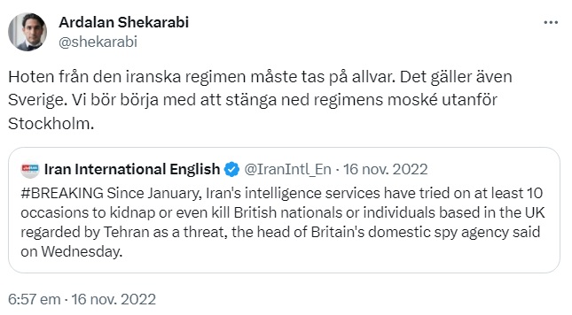 Även i Sverige har förslaget varit uppe för debatt. För ett år sedan föreslog S-toppen Ardalan Shekarabi att en moské som han menar är Irans förlängda arm i Sverige bör stängas och imamen bör utvisas till hemlandet.