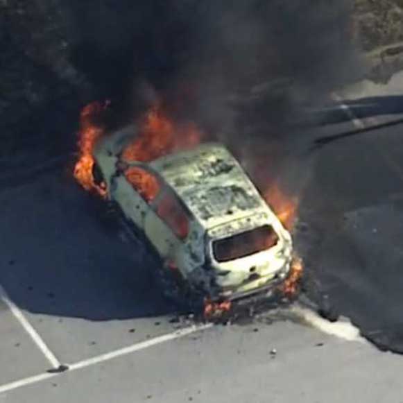 Även privatpersoners bilar stack i brand under kravallerna. Bild: Polisen.