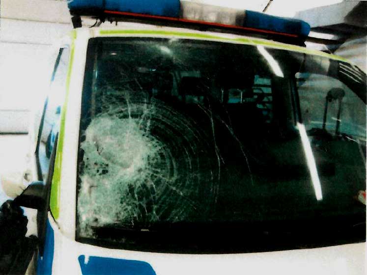 Ett av de många polisfordon som vanaliserades under kravallerna. Bild: Polisen.