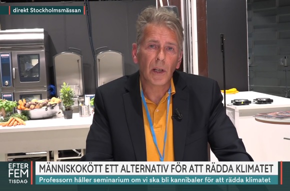 En av talarna är beteendevetare Magnus Söderlund som är professor i marknadsföring vid Handelshögskolan. Han håller seminarier om möjligheten att bli kannibaler för att rädda klimatet. På måndagen medverkade forskaren i TV4 för att berätta mer om sina undersökningar.