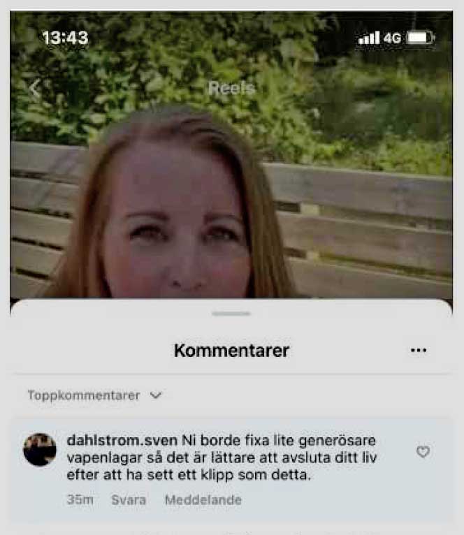 Det var drygt en månad innan valet förra året som Sven kommenterade ett videoklipp som dåvarande C-ledaren Annie Lööf postat på Instagram. Kommentaren löd: ”Ni borde fixa lite generösare vapenlagar så att det är lättare att avsluta ditt liv efter att ha sett ett klipp som detta.”