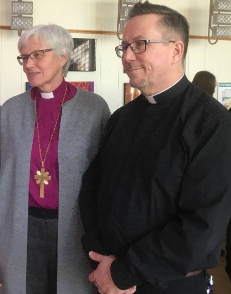 Ärkebiskop Antje Jackelén med kyrkoherde Jerker Alsterlund.