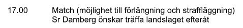 ”Sr Damberg önskar att träffa landslaget efteråt”.