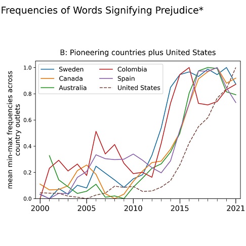 Resultaten visar att en ökad framträdande plats i nyhetsmedier av den politiskt korrekta terminologin är ett globalt fenomen som börjar tidigt efter 2010 i pionjärländer men ändå mestadels globalt förekommande efter 2015.
