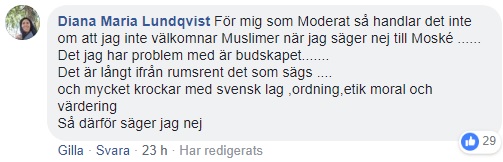 Efter Samhällsnytts artikel har riksdagsledamot Sara Seppälä (SD) tillbakavisat Thoralf Alfssons uppgifter att hon möjligen kan ha känt till moskémotionen. Vidare tar hon avstånd från motionen och säger att det som skett är ”oerhört tråkigt”.