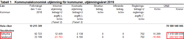 565 miljoner kronor till andra kommuner Samhällsnytt har tittat närmare på det kommunala utjämningssystemet för 2019 där det framgår att Danderyd betalar 561 miljoner kronor till andra kommuner och landsting för att de ska kunna tillhandahålla likvärdig service oberoende av förhållanden som råder.