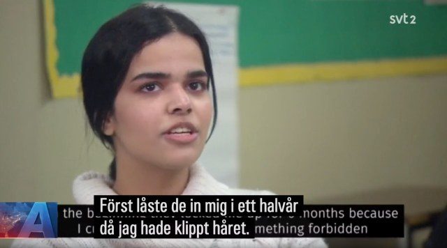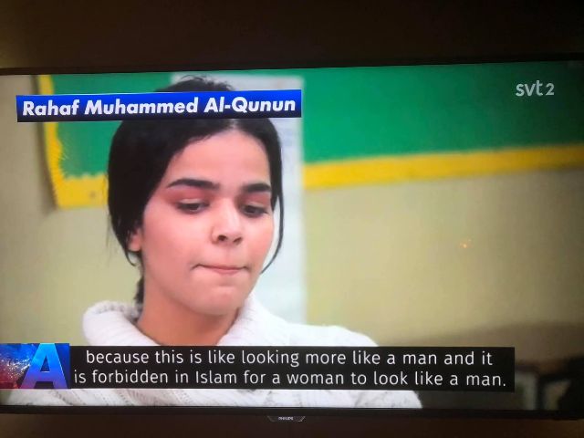 I ett SVT-inslag i SVT Aktuellt på tisdagskvällen intervjuades en 18-årig saudisk kvinna som flytt Saudiarabien och fått asyl i Kanada. I intervjun berättar hon att det är ”haram” inom islam att klippa håret kort då kvinnan liknar en man. SVT valde att ta bort den delen i textningen.