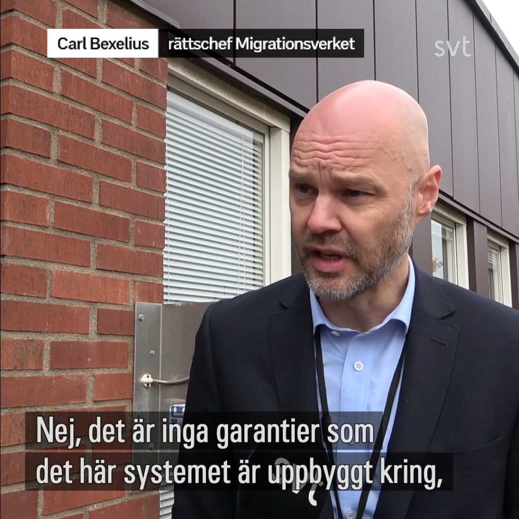 Bexelius ställs ändå till svars inför SVT:s journalist för att man valt att inte stoppa Ibrahims utvisning i skenet vad han uppger sig ha utsatts för efter ankomsten till hemlandet. Myndighetschefen medger att det inte finns ”några garantier” att utvisade brottslingar får röda mattan utrullad där de återvänder hem men att Migrationsverket ändå gör rättssäkra bedömningar.
