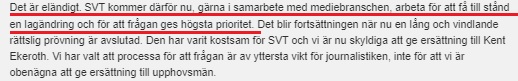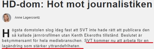 Efter att Högsta domstolen avgjort tvisten mellan statstelevisionen och Kent Ekeroth rörande den så kallade ”järnrörsfilmen” meddelar den skattefinansierade public service-aktören att de nu ska ”verka för en lagändring”. Vidare meddelar SVT att lobbyarbetet ges ”högsta prioritet”.