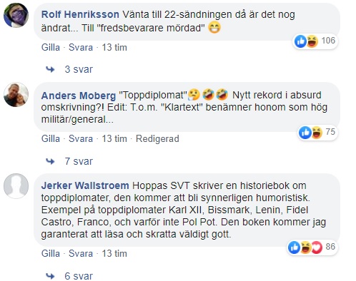 I sändningen presenterades Irans högsta general, Qasem Soleimani, som en mäktig ”toppdiplomat”, något som Facebookkontot ’I allmänhetens tjänst – granskning av public service’ uppmärksammade. Soleimani har bland annat terrorstämplats av USA.