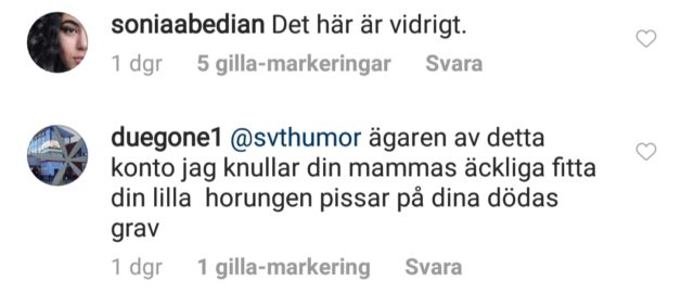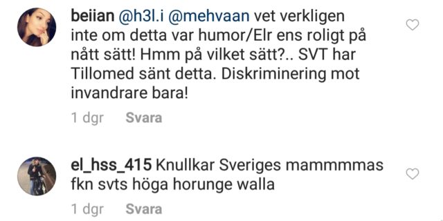 Mängder av kommentarer Under helgen har mängder av kommentarer rasat in mot SVT i sociala medier. Det gick så långt att SVT var tvungna att stänga av kommentarsfältet för sitt konto på Instagram.