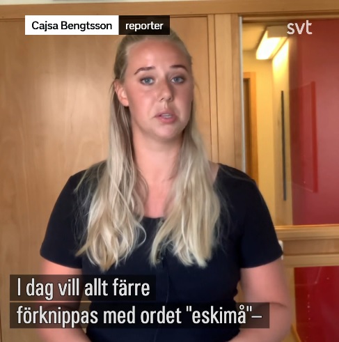 Nu har statstelevisionen skiftat fokus från Amerikas utsprungsbefolkning till Grönlands urinvånare som allmänt kallas för eskimåer. På samma sätt som tidigare hävdar SVT att man runt om i världen avlägsnar ordet eftersom det ”i allt högre grad anses vara ett nedsättande ord”. Istället för ”eskimå” instruerar SVT sina tittare att de ska använda ordet ”inuit”.
