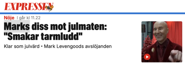 Levengood passar även på att just ”samla Sverige” i sin egen julstämning genom att slå fast för folket att svensk julmat ”smakar tarmludd”.