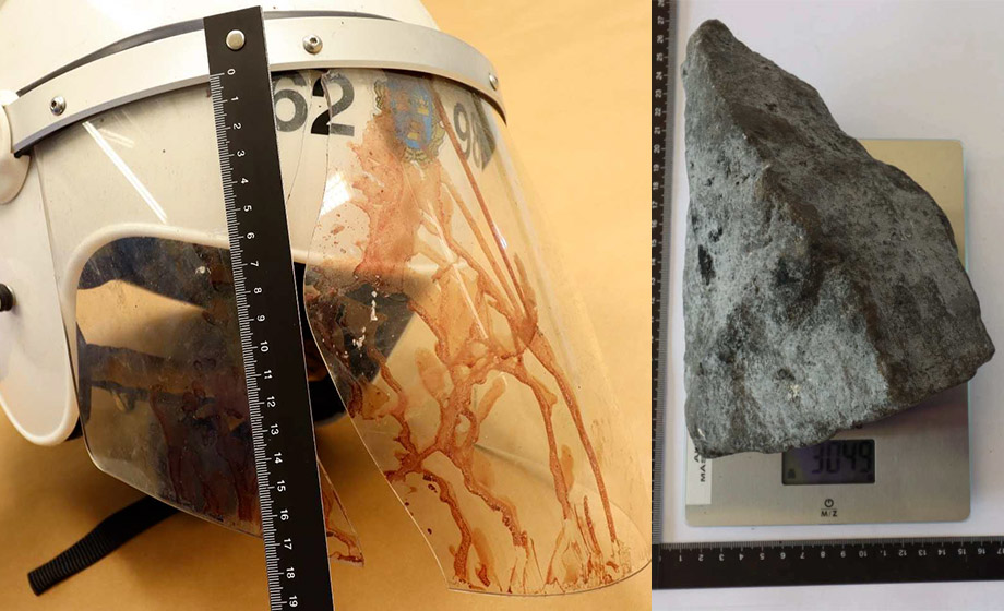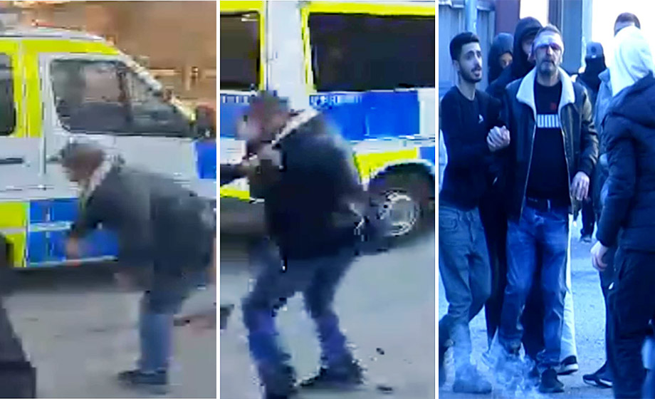 Stenträffen i huvudet fångas på film av polisens kameror.