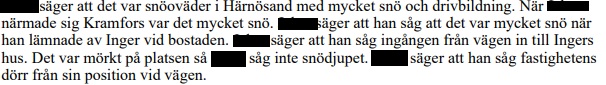 I samma förhör som Abid redogör för sin bedömning uppger han dock att det var snöoväder, oplogat och mörkt i området.
