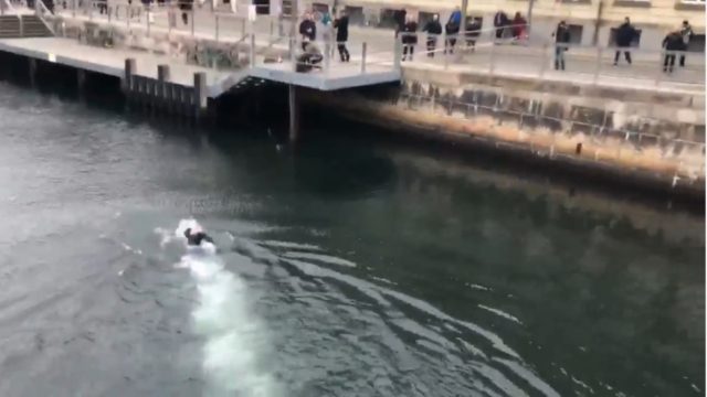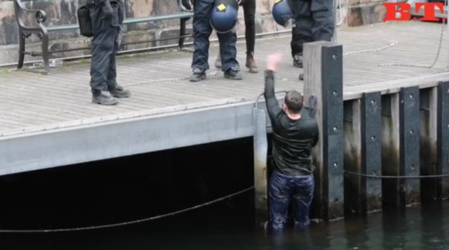 En man hoppade i kanalen som rinner vid Christiansborg och avskiljde demonstrationsplatserna från varandra – i ett försök att konfrontera motdemonstrationen.